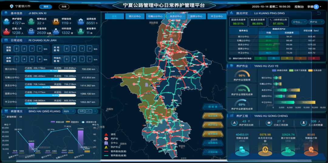 那个“AI + 数字国省干线养护平台”更为重要,它好比是给每一条道路构建了一份电子病历,自建成之日起的全部病害、维修记录以及技术状况都被详细记录在案了。全区32个公路养护站借助这个平台达成了对公路的精准“画像”,哪一段道路应该“吃药”,哪一段道路应该“住院”,清晰明了。