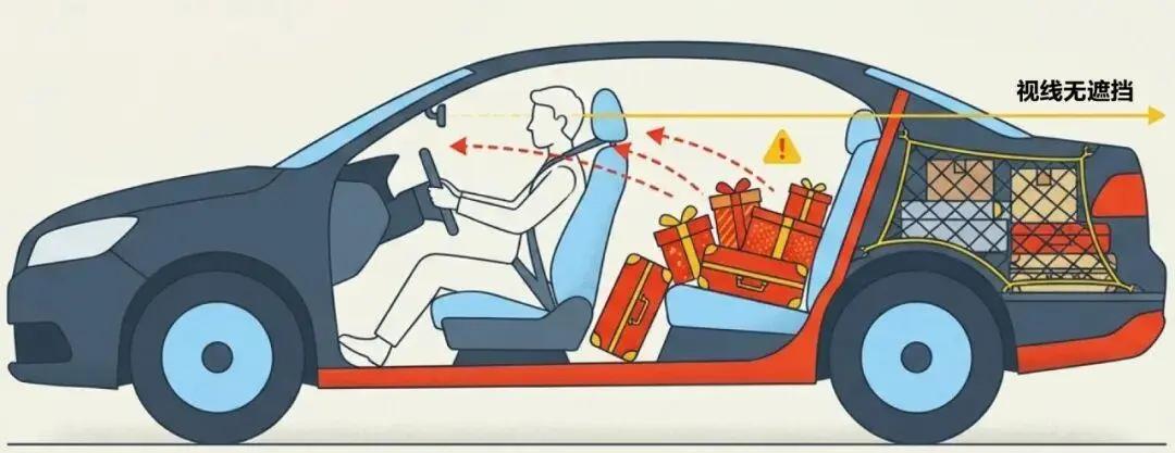 后备箱在装满年货以及行李之时,肯定是要进行固定的。在高速上要是急刹车,一个重达20斤的米袋子就会产生将近200斤的冲击力,这冲击力完全足够撞碎前排座椅。在2026年1月的时候,大广高速江西段有一辆面包车实施紧急制动,此面包车后备箱的几箱饮料当时直接飞了过来,结果砸断了驾驶员的肋骨。
