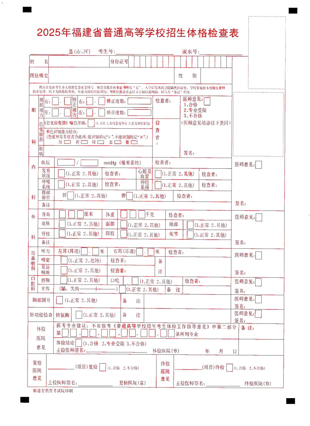 体检结论填写要求需统一规范,凡能用数据体现的,务必填写具体数值。像身高、体重这类简单项目,要是与客观实际不相符合,考生可在2025年2月28日之前申请复查。谷丙转氨酶出现异常的考生,经过治疗后,同样可在规定时间凭借准考证前往指定医院进行复检。