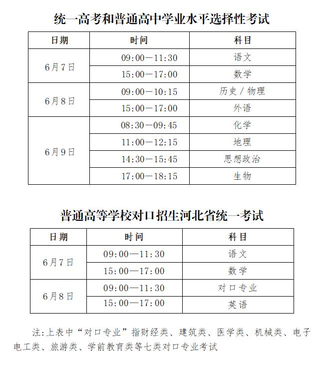 2022年,河北省高考于6月7日开始进行,一直持续到9日,共计三天时长。语文考试用时长达150分钟,数学以及外语考试时长均为120分钟,而剩余的选择性考试科目,每科时长仅75分钟。尤其需要注意的是,6月9日的再选科目考试,考生有可能在同一考点,然而却在不同考场参与考试。