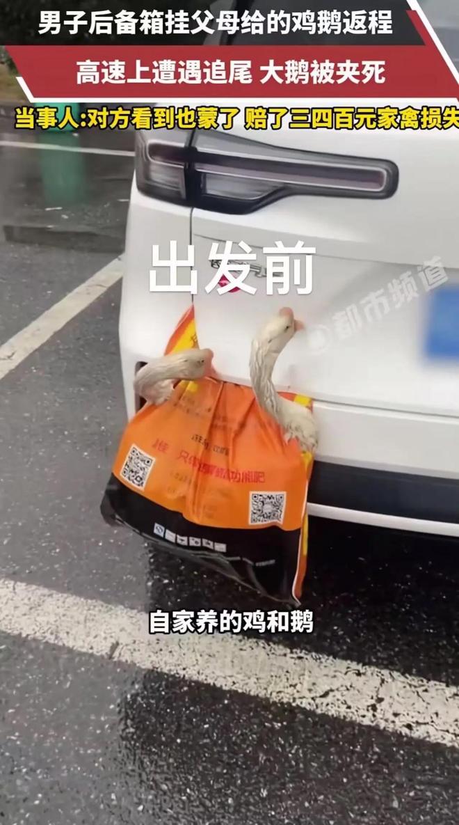 2026年2月24日那天,在湖南永州的高速上,发生了一起特别离奇的车祸,来自湖北的胡先生,将父母给他的活鸡活鹅挂在了后备箱外用来透气,结果被追尾后,那些家禽当场就死亡了,他拿了对方给的三四百元赔偿,之后又把死鸡死鹅捡回去吃了,这件事情传到了网上以后,网友们就为“赔了钱,死鸡归谁”这一问题吵得不可开交。