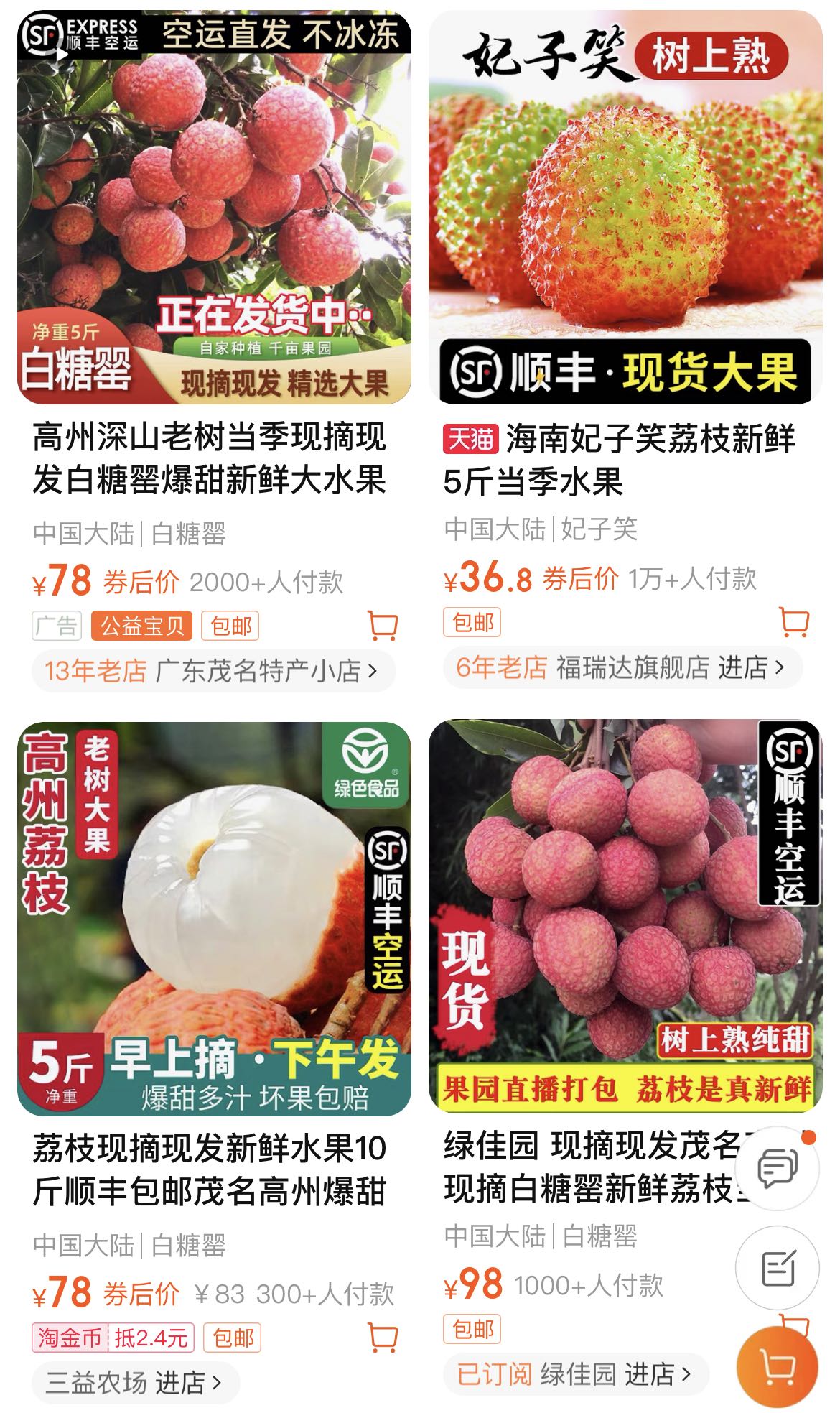 顺丰荔枝航线运用全货机进行运输,使得荔枝能够在最快半日内抵达目的地,于淘宝等电商平台,众多注有“顺丰空运”字样宣传图的荔枝商家,向消费者传递时效保证信息,哪怕是东北偏远县级区域内乡镇快递覆盖率欠佳之地,当地大城市亦能实现48小时送达。