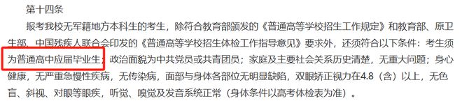 同理,陆军工程大学于2025年无军籍人防本科学员招生章程里,同样明确标明仅招收应届毕业生。这表明要是你选择复读,这些顶尖军校的校门便会完全对你关上。想要报考此类学校的同学,务必一次成功。
