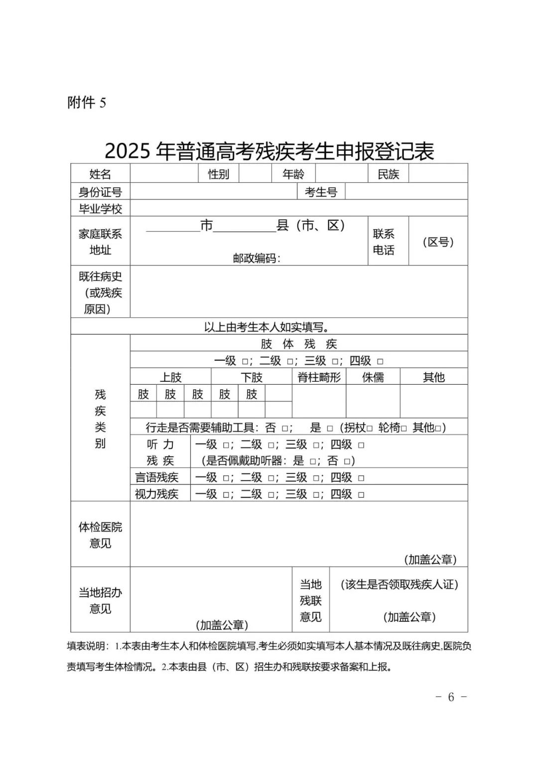 对于体检结论持有异议的考生,可于接到复检结果之后的5个工作日以内,经由区招考办来提出申请。广州市第一人民医院负责做出最终裁定,各区会安排专人带队,组织考生前去复检。残疾考生需要填写《2025年普通高考残疾考生申报登记表》,待体检医院填写情况之后,交予招考办汇总。