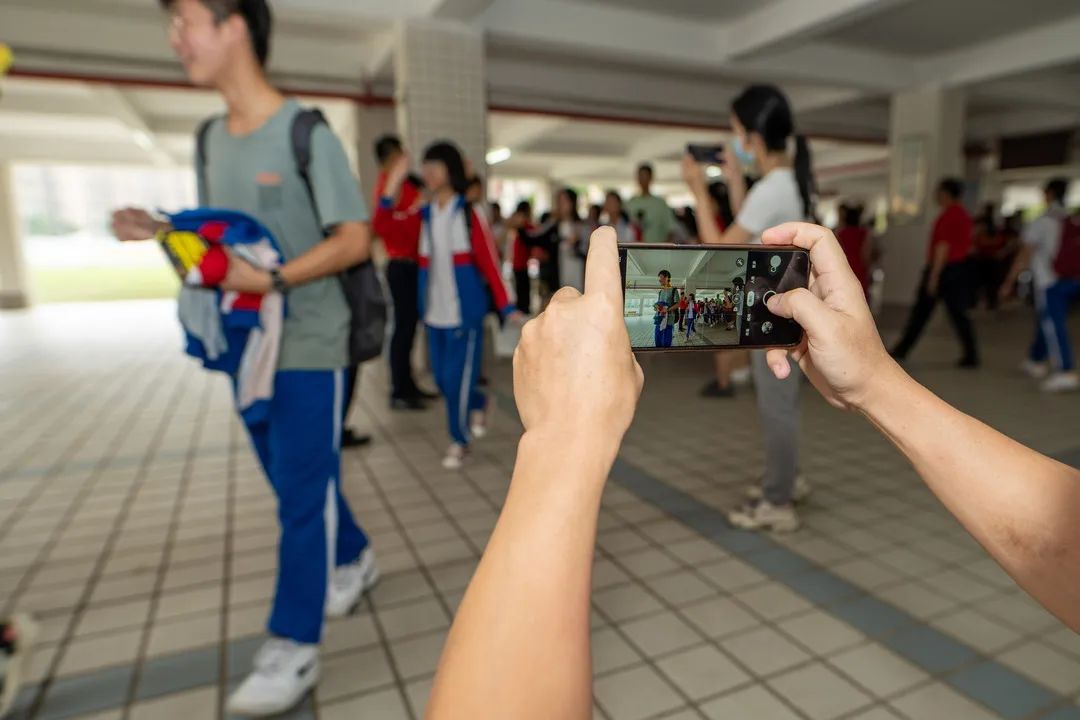 在早上七点半的时候,四会中学考点那儿已然有很多考生抵达了。距离开始考试还有一个半小时,学生里头有的在最后那一刻翻看笔记,有的则是三个一群、五个一伙地相互鼓励着。这样一种提前抵达的习惯,体现出考生们对于这场关乎人生的重大考试的重视程度。